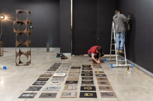 Aspecto del montaje de la exposición Acoplamientos en la Galería Santa Fe. Fotografía: Archivo particular