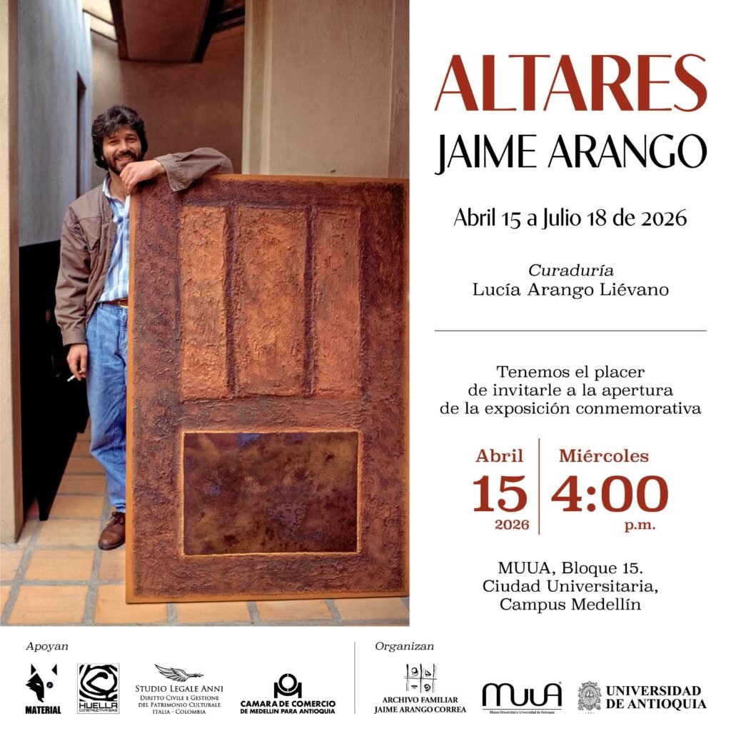 Este proyecto cuenta con el apoyo y patrocinio de la Cámara de Comercio de Medellín para Antioquia, junto a aliados institucionales y culturales y realizado por y organizado por Archivo Familiar Jaime Arango Correa junto con el MUUA que hacen posible la preservación y proyección del legado del artista.