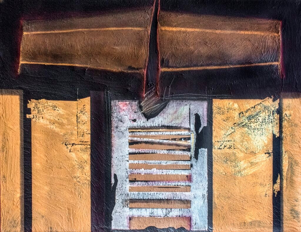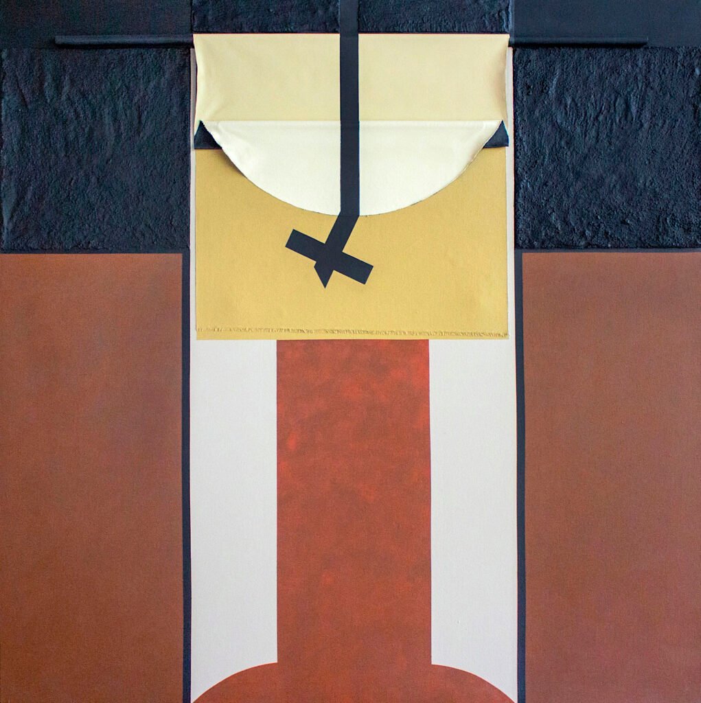 Arena, metal oxidado, madera, cartón y objetos cargados de simbolismo que transforman los lienzos en superficies vivas, en territorios de tensión donde lo esencial y lo visceral se encuentran. Cada pieza funciona como un altar contemporáneo: un espacio donde conviven la herida, el tiempo, la muerte y la trascendencia. Y como bien lo dice la curadora Lucía Arango Liévano, Ph.D., “La obra de Jaime Arango puede leerse como una sostenida búsqueda de libertad, donde la materia, el cuerpo y la experiencia del espectador se transforman en un espacio activo, abierto e inestable.”