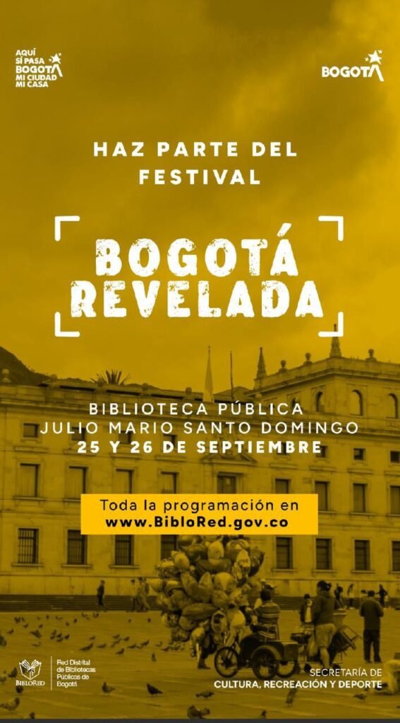 El 25 y 26 de septiembre la Biblioteca Pública Julio Mario Santo Domingo será escenario del Festival Bogotá Revelada 2025, un encuentro cultural que celebra la fotografía como lenguaje para narrar la ciudad, con talleres, conversatorios, música y una gran exposición, esta iniciativa invita a la ciudadanía a mirar Bogotá desde nuevas perspectivas