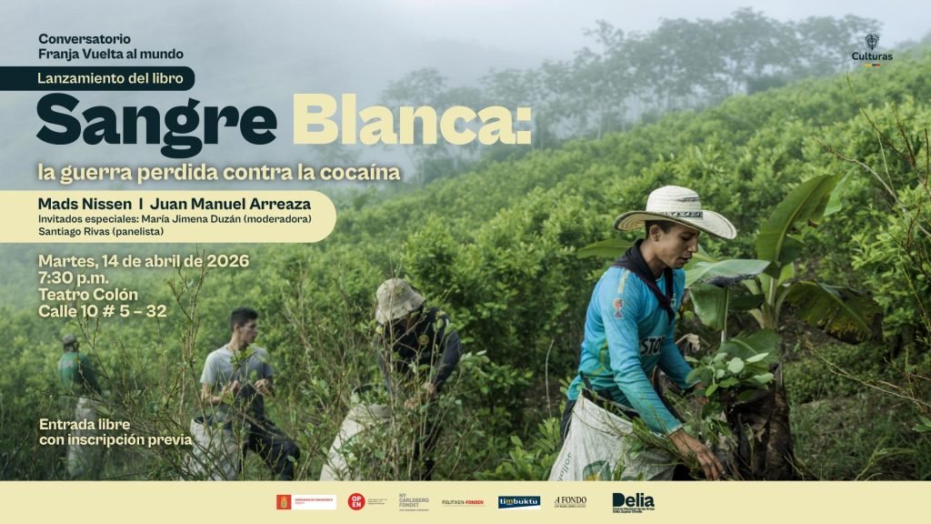 El martes 14 de abril a las 7:30 p.m., el Teatro Colón será escenario del lanzamiento de Sangre Blanca: la guerra perdida contra la cocaína, proyecto del fotoperiodista danés Mads Nissen —ganador del World Press Photo— en colaboración con el artista colombiano Juan Manuel Arreaza. El libro recorre la ruta global de la cocaína desde los territorios de producción en América Latina hasta los espacios de consumo en Europa, a través de una potente combinación de fotografía y arte. La jornada contará con la participación de María Jimena Duzán como moderadora y Santiago Rivas como panelista, y es posible gracias al apoyo de la Embajada de Dinamarca.
