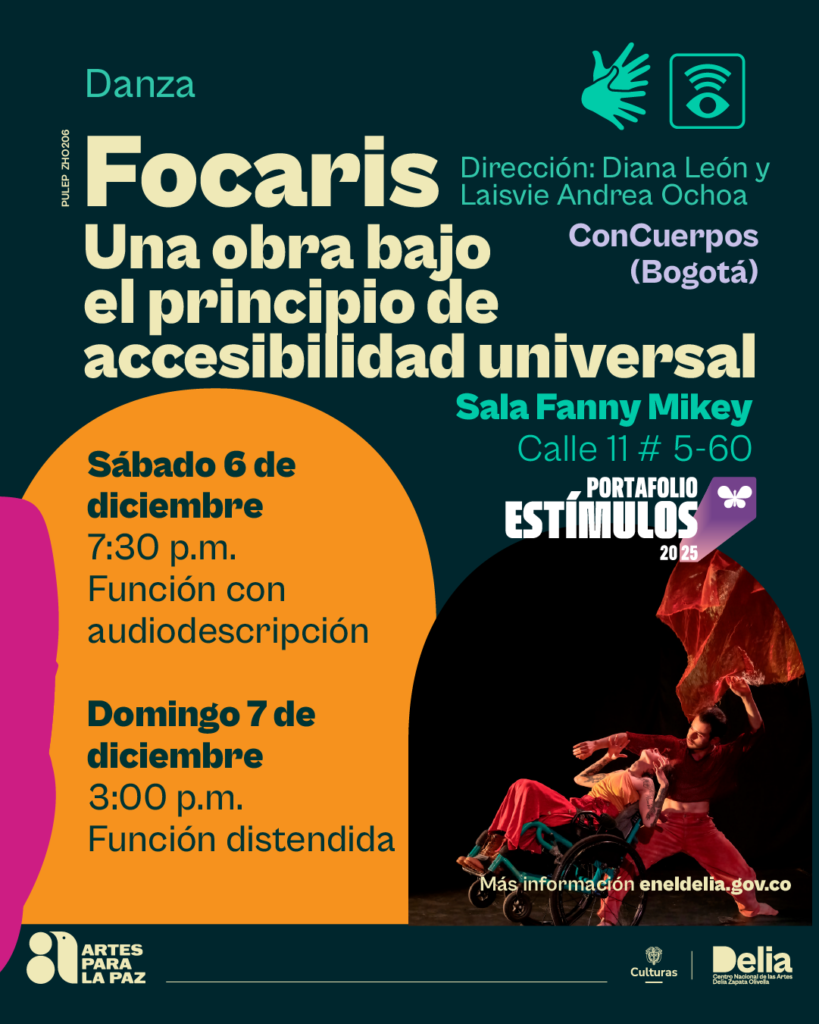Se harán dos funciones de la obra Focaris de ConCuerpos, compañía artística referente de la danza inclusiva en Colombia y la región, y talleres de danza, video poesía, música y comunicación corporal.
