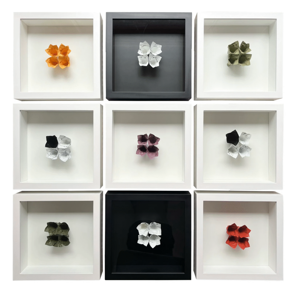 “Las piezas se desbaratan en menos de un minuto, es un papel doblado y puesto y muy frágil. Un soplido acaba con la escultura, con esa pieza que trabajé para encontrar la manera estética de que a los papeles les llegue la luz, tengan una geometría específica y me permitan captar un instante de tiempo. Hay una suma de técnicas aquí: el artista que invierte su tiempo, la escultura como herramienta para la comunicación, para conectarse con ese momento y la foto que en su misma esencia captura el momento antes y después y quien adquiere la obra, se lleva el testimonio de un instante donde la escultura existió y se transformó en fotografía. Una escultura efímera e inmortal al mismo tiempo. Es un registro intencionado en el tema estético para que la imagen despierte sentidos y emociones en el espectador”, dice Jairo Llano sobre su trabajo.