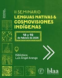 La Biblioteca Luis Ángel Arango invita al II Seminario: Lenguas Nativas y cosmovisiones indígenas, un espacio que busca revalorizar las lenguas nativas como formas de ser, estar y habitar y como expresiones para comprender y explicar el mundo. El Seminario que tendrá lugar los días miércoles 18 y jueves 19 de febrero se organiza en el marco del Día Nacional de las Lenguas Nativas, en un país que celebra la riqueza de la diversidad cultural, pero que también requiere conversaciones profundas respecto a la importancia de cuidar y preservar las lenguas nativas que hoy en día corren el riesgo de desaparecer.