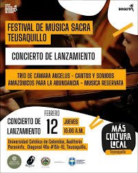 Este evento con entrada libre a todo tipo de público, previa inscripción a través del enlace: https://forms.gle/SG3CbFH1Z62FQmHS6, contará en escena con 3 agrupaciones musicales: el Trio de Cámara Ángelus, Cantos y Sonidos Amazónicos para la abundancia y Música Reservata. Así mismo, este festival se extenderá durante el mes de febrero y marzo de 2026, meses en lo que se llevarán a cabo cinco conciertos y dos visitas patrimoniales.