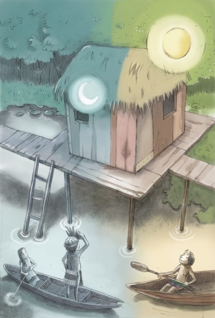 Los waraos toman la luz. Ilustración: Óscar Soacha, cortesía Panamericana Editorial